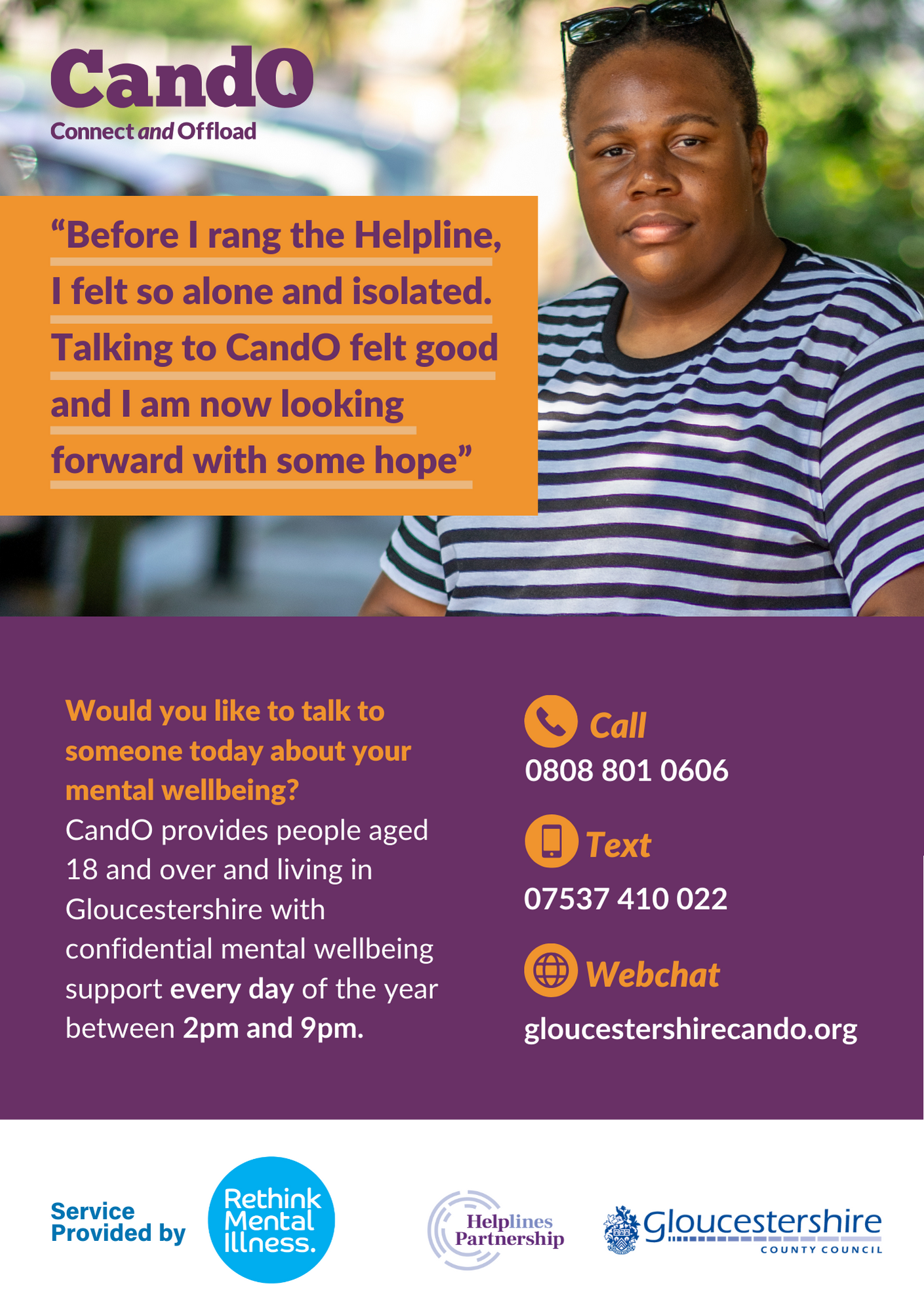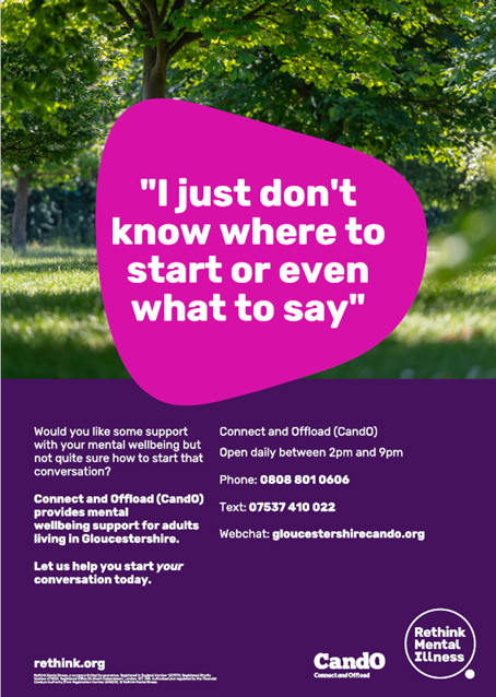 If you are a professional who would like to discuss how we can work with your organization to support adults in Gloucestershire, please contact cando@rethink.org