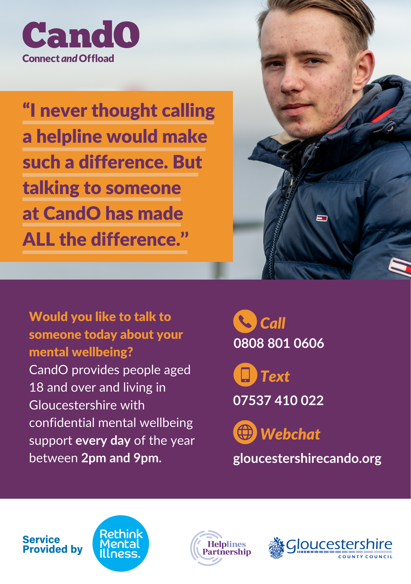 If you are a professional who would like to discuss how we can work with your organization to support adults in Gloucestershire, please contact cando@rethink.org
